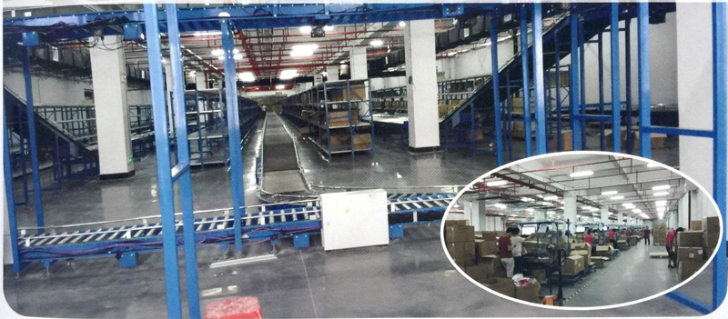 ★服装大型项目;4栋楼组成,楼库顶层布置三层阁楼,总面积10万平方米。 ★物流系统输送线长3.5km以上,集成PAS播种系统、DPS播种系统及多种箱式输送分拣设备,包括提升机、塑封机、动态称重、自动贴标及滑块分拣机等设备; ★系统处理能力达到2500箱/小时,满足每天100万件的业务需求。