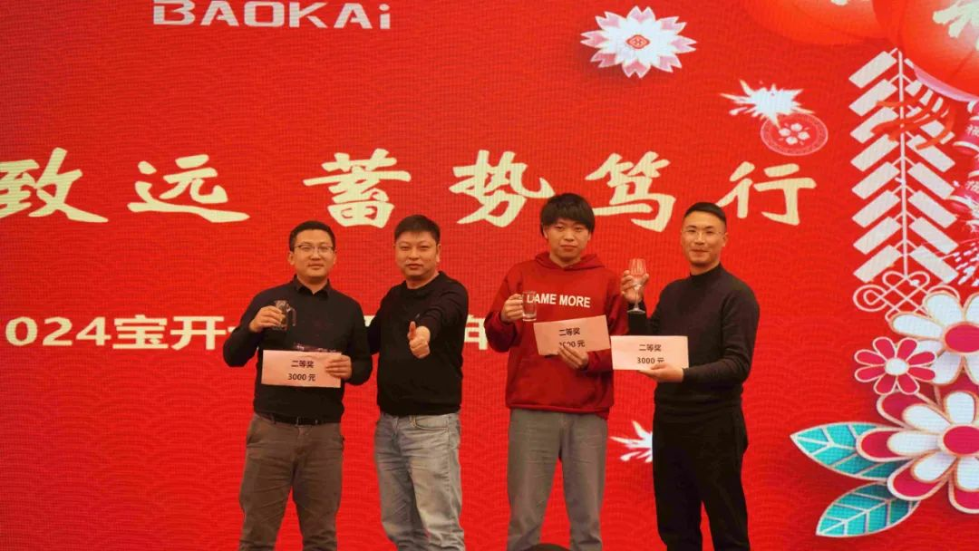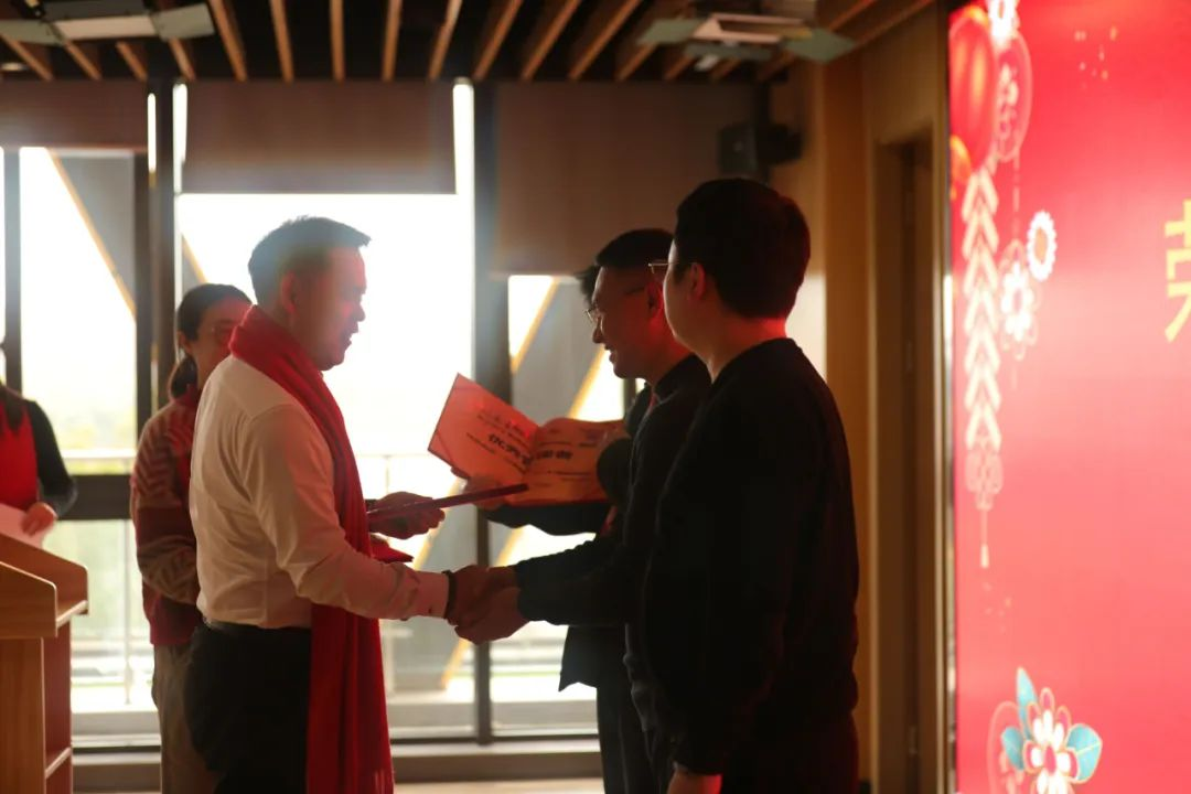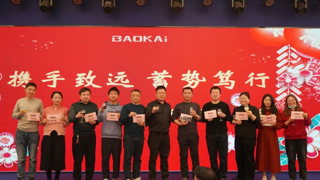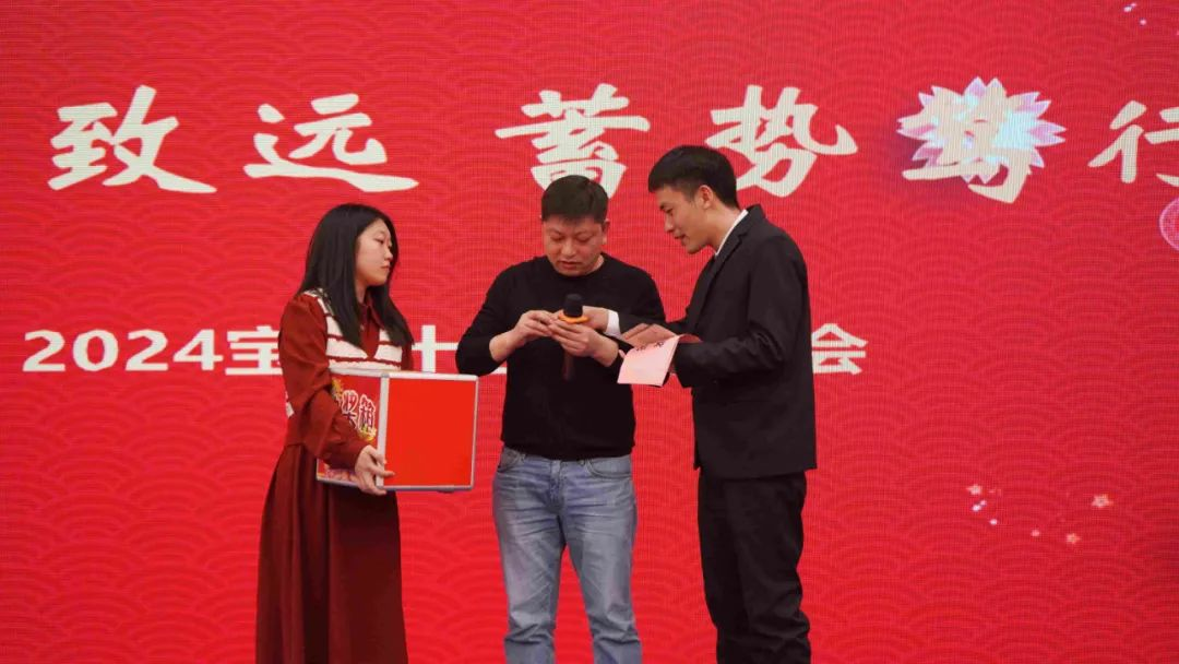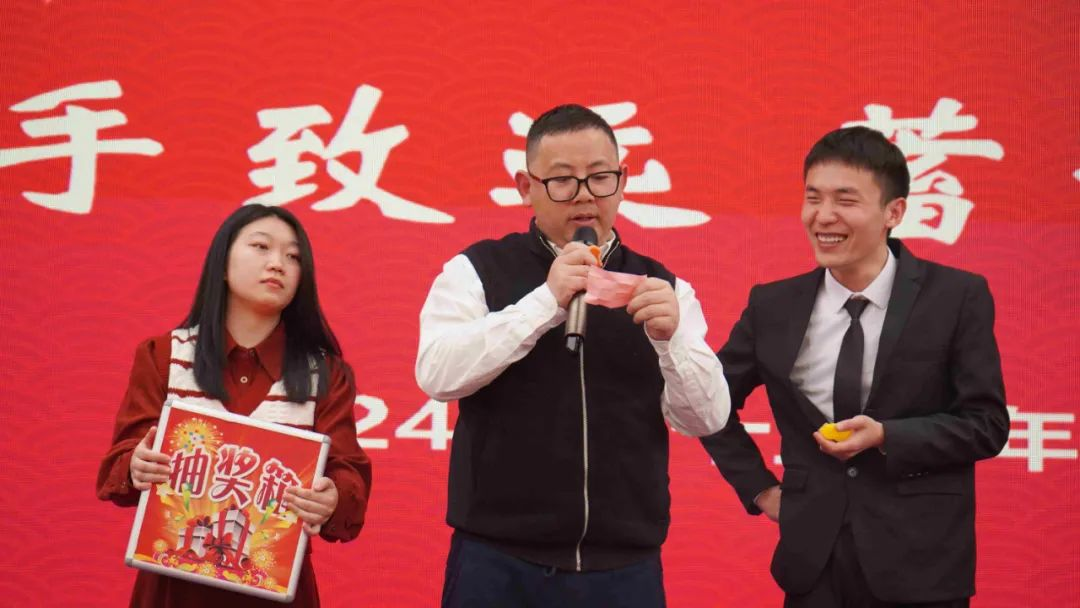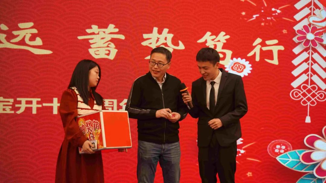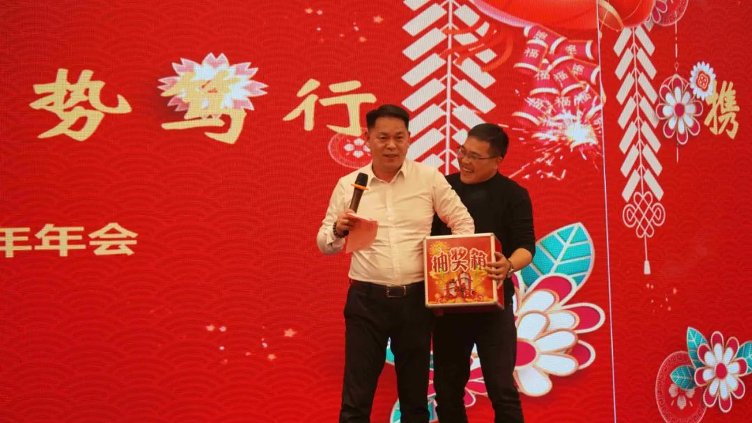 各位领导逐一上台为大家抽取并为幸运儿颁发奖品,同时临时增设超额奖励,还为大家发出十余轮红包大赏,将晚宴气氛推向高潮。