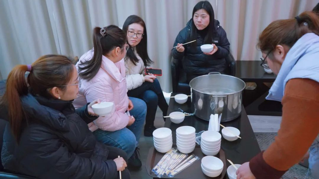 一碗碗热气腾腾的汤圆,在寒冷的天气里,为大家送去温暖和关爱,也象征团团圆圆,和睦幸福。