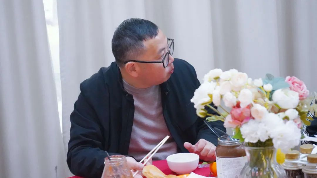 午休时间,大家团坐一桌,共话家常,其乐融融。